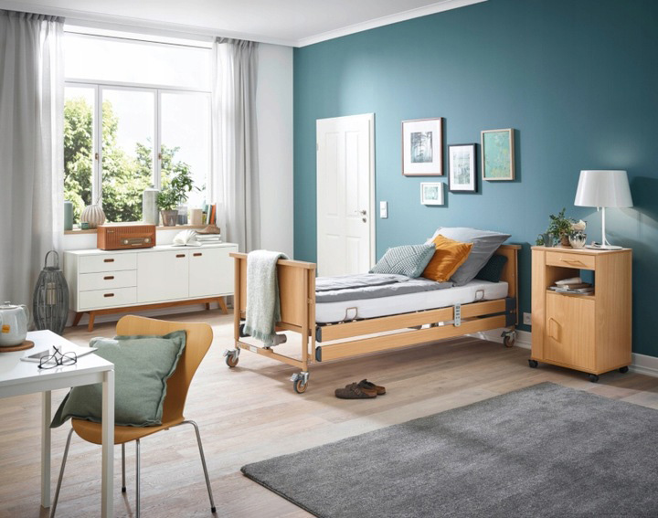 Istnieje również możliwość wyposażenia łóżka w dodatkowe akcesoria, takie jak miękkie poszycie, lampka do czytania oraz taca do podawania posiłków. Sam wybierz, co będzie Ci najbardziej potrzebne i weź pod uwagę zakup jednego lub kilku elementów dodatkowych, jakie oferuje łóżko rehabilitacyjne Burmeier Dali.